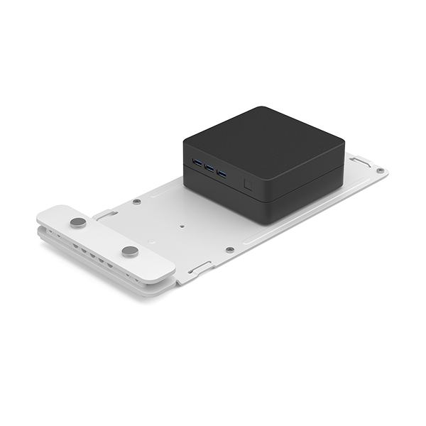 Logitech Compute Mount. Tipo: Suporte de CPU montado no monitor, Interface de montagem em painel: 75 x 75,100 x 100 mm, Cor do produto: Branco. Largura: 164 mm, Profundidade: 350 mm, Altura: 35 mm. Largura da caixa principal exterior: 157 mm, Comprimento da embalagem principal exterior: 376 mm, Altura da caixa principal exterior: 185 mm